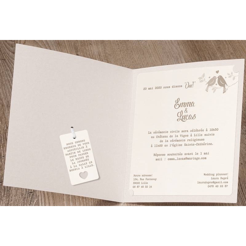 Faire Part Mariage Suedine Coeur Oiseaux Belarto Yes We Do 728008 W
