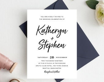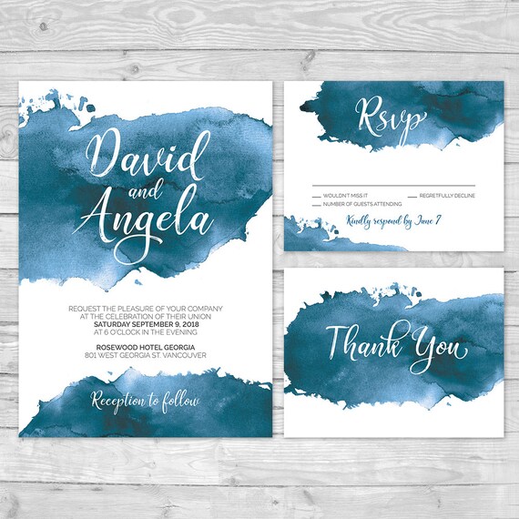 Blue Watercolor Wedding Invitations Printable Wedding Etsy