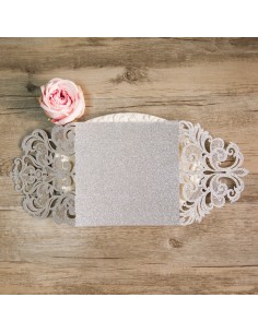 Envoyer faire part mariage par mail. Faire part de mariage classique de style vintage. Motif imitation dentelle finition gaufrage pour le oui dimensions 175 x 115mm. Faire part de mariage personnalise sur le theme des anges et des plumes.