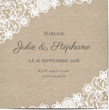 Carte De Remerciement Mariage Effet Nappe Dentelle Sur Camel