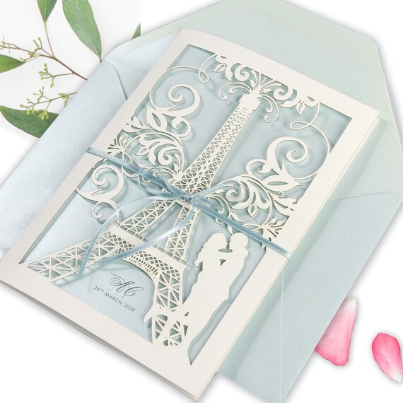 Laser Cut Paris Faire Part De Mariage Elle A Dit Oui A Paris Etsy