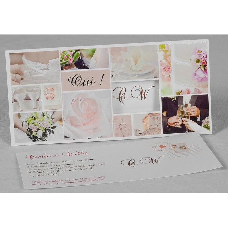 Faire Part Mariage Classique Rose Pastel Fleurs Carte Postale 49630