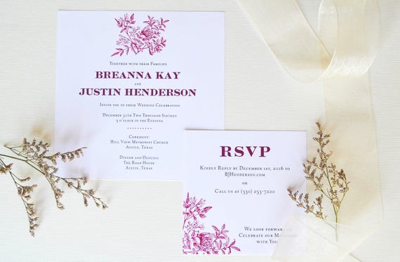 Invitation De Mariage Floral Faire Part De Mariage Etsy