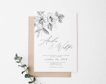 Floral Wedding Invitation Kit Bohemian Flower Invitation Boho