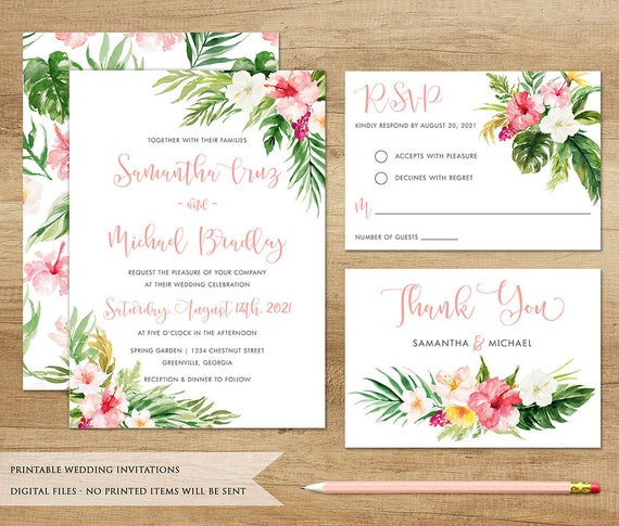 Faire Part De Mariage Tropical Fleurs Tropicales Destination Etsy