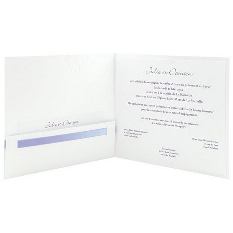 Faire Part De Mariage Blanc Style Pochette Avec Ruban Bleu