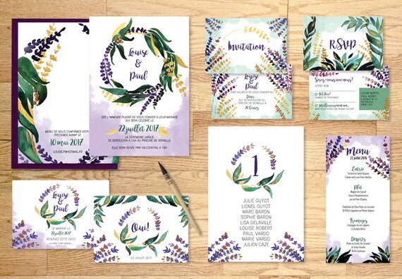 Pack Imprimable Faire Part Mariage Lavande Eucalytus Aquarelle Etsy