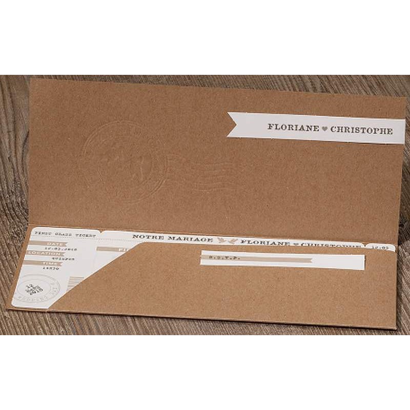 Faire Part Mariage Billet Avion Marron Gaufrage Belarto Romantic 726020