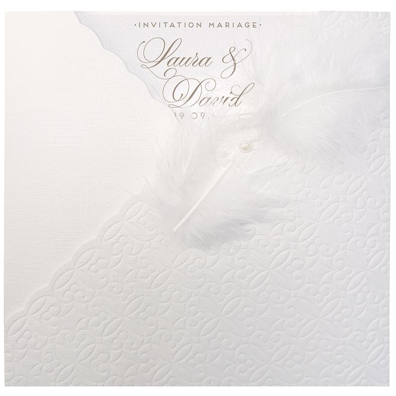 Faire Part Mariage Plume Pochette Blanche Avec Relief Mosaique