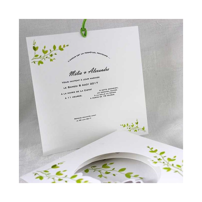 Faire Part Mariage Exotique Pochette Decoupe Laser En Feuillage