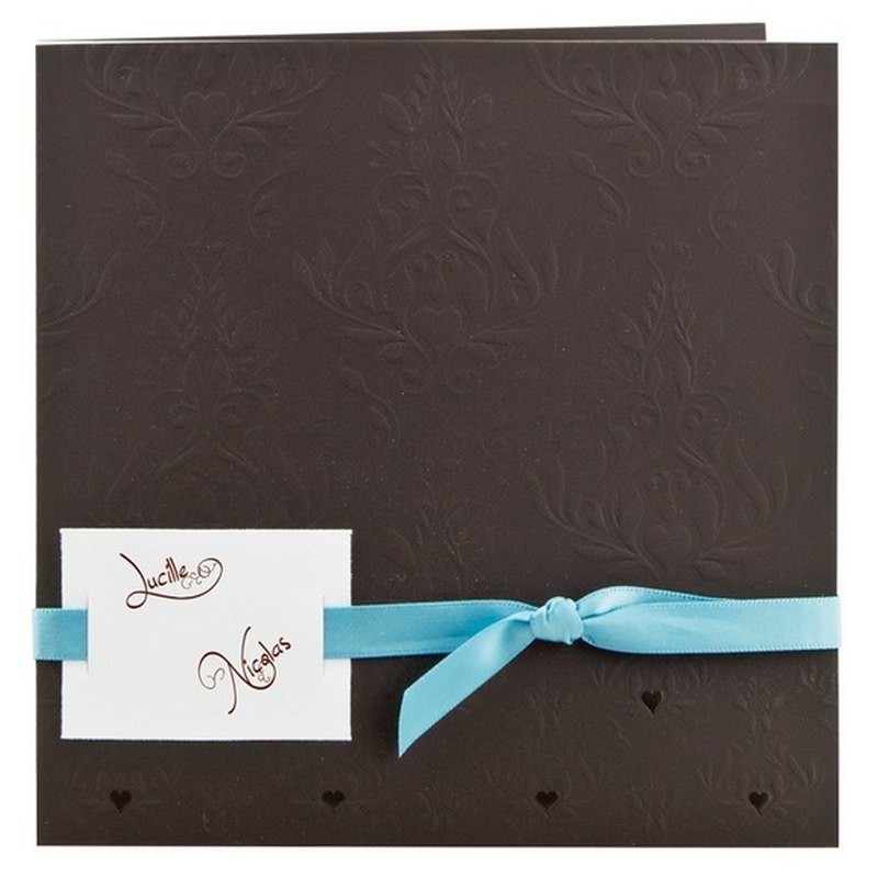 Faire Part De Mariage Arabesque Vague Sur Chocolat Et Bleu Avec