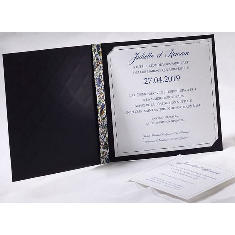 Faire Part Mariage Bijou Ruban Bleu Marine Blas Desmoutiez