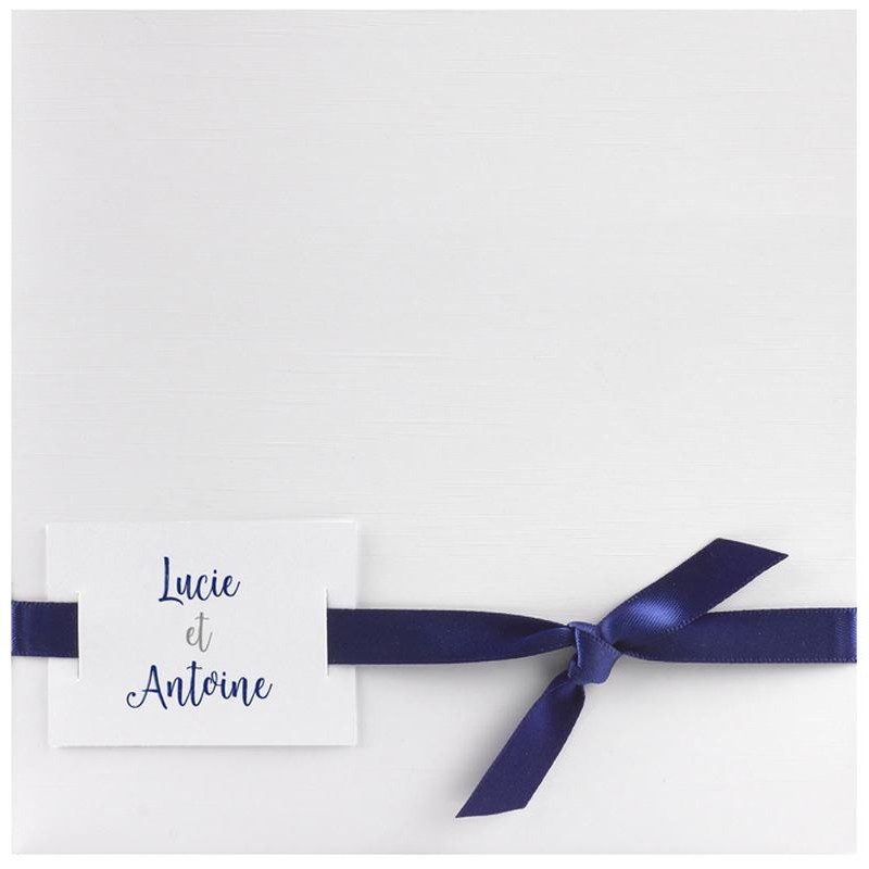 Faire Part Mariage Classique Blanc Ruban Bleu Marine Regalb Nous
