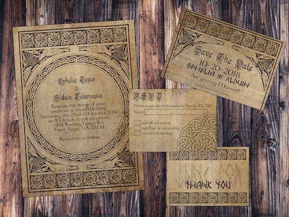 Faire Part De Mariage Nordique Viking Classe Parchemin Save Etsy