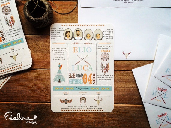 Faire Part Bapteme Mariage Retro Vintage Theme Retro Tipi Etsy