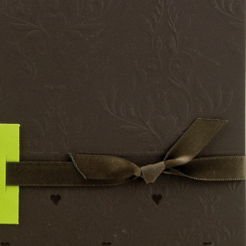 Faire Part Mariage Chic Pochette Et Ruban Marron Encart Vert Anis